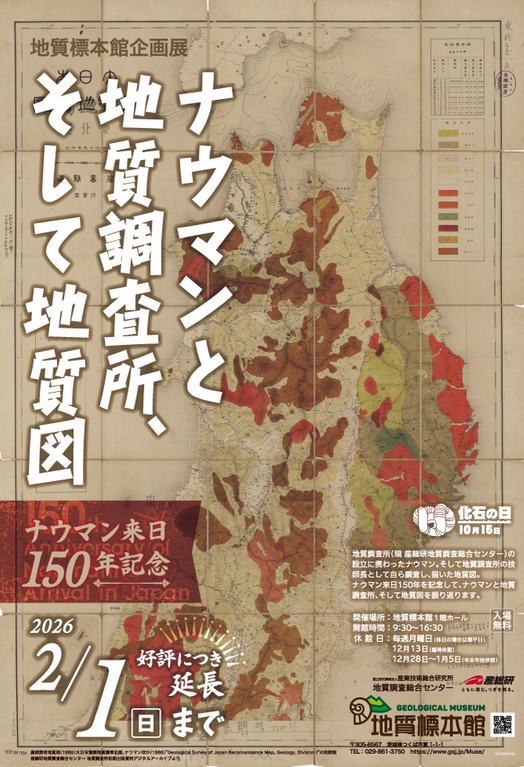 【好評につき会期延長!】地質調査所(現 産総研地質調査総合センター)の設立に携わったナウマン。そして地質調査所の技師長として自ら調査し、描いた地質図。ナウマン来日150年を記念して、ナウマンと地質調査所、そして地質図を振り返ります。