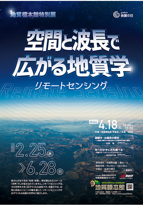 本展示では、空間と波長という二つの軸を通じて、リモートセンシングが広げてくれる地質の